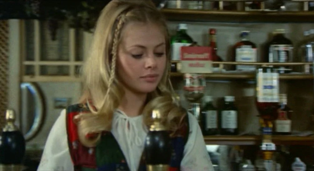 Rising star Britt Ekland plays Willow, the pub landlord’s seductive daughter. The script called for her to take her clothes off, but Ekland discovered during filming that she was three months pregnant, so body-doubles were brought in for the scenes where Willow attempts to lure Howie to her bedroom by singing a song and performing a sexy dance through the shared wall.